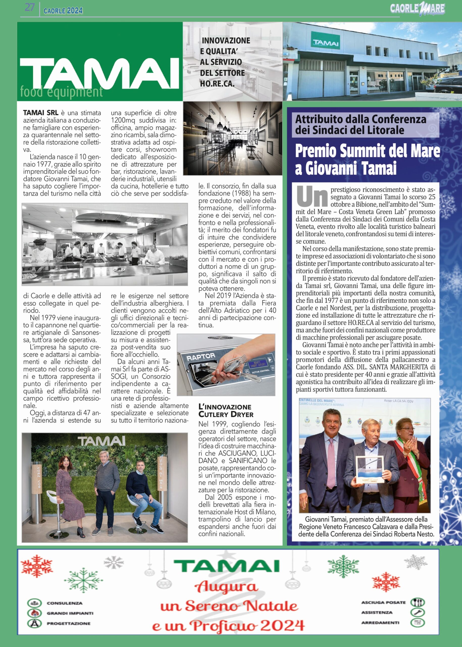 Dalla fondazione nel 1977 a oggi, il percorso di Tamai SRL è stato segnato dalla passione e dalla continua ricerca della qualità. Recentemente, questa storia di successo è stata celebrata con la consegna del premio “Summit del Mare” a Giovanni Tamai.